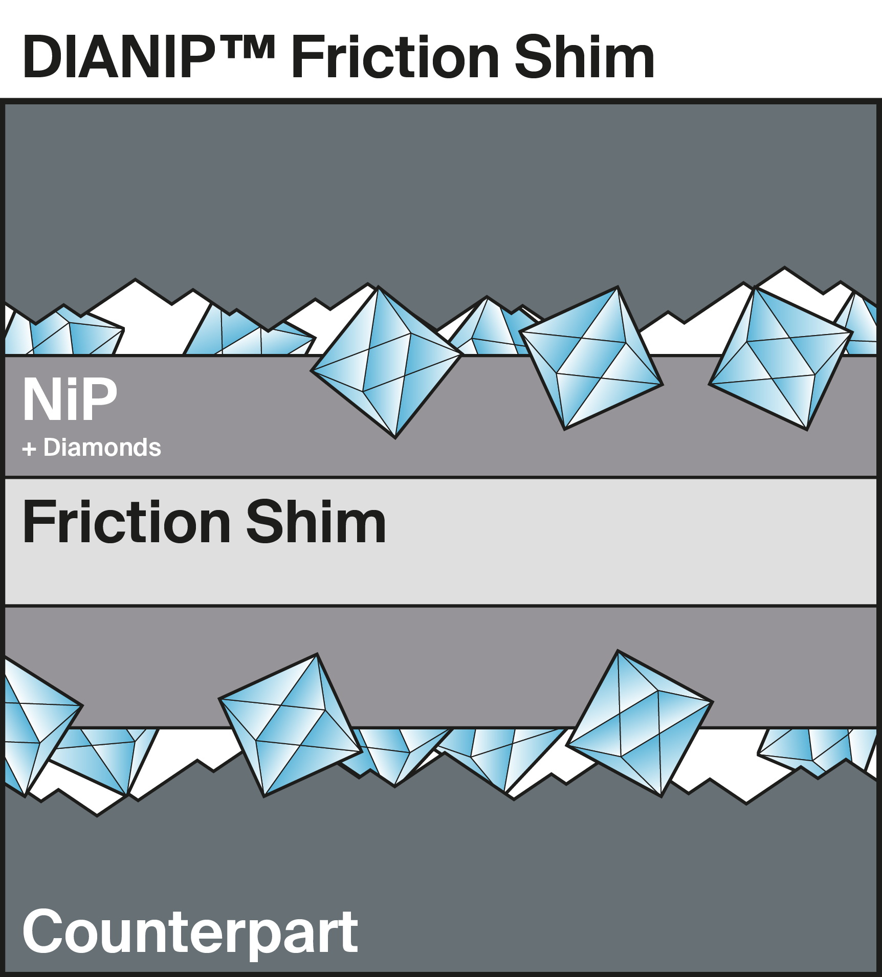 增加表面摩擦系數(shù)在設(shè)備行業(yè)的某些領(lǐng)域中同樣重要,例如抓取或阻塞一個特定位置的移動部件。DIANIP金剛石摩擦墊片提供更高的摩擦系數(shù),可以獲得更高的扭矩傳輸。鎳磷涂層基體嵌入規(guī)定尺寸粒度的金剛石可以使接觸面獲得高表面粗糙度以傳遞更高扭矩,而不會損壞接觸面。